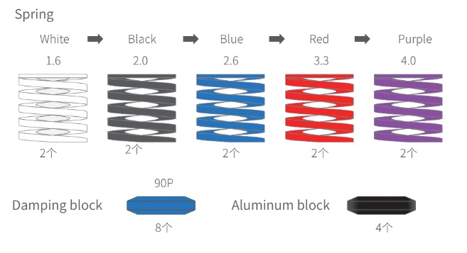 Основу большинства комплектов составляют пружины и демпферы, которые изменяют характеристику нажатия педали, делая её более жёсткой и прогрессивной. Это позволяет точнее дозировать торможение и улучшает контроль автомобиля.