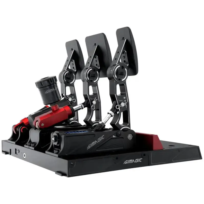Педали выполнены в строгом чёрном цвете и полностью совместимы с экосистемой Simagic P1000, включая гидравлические апгрейды, инвертированные комплекты и тактильные модули.