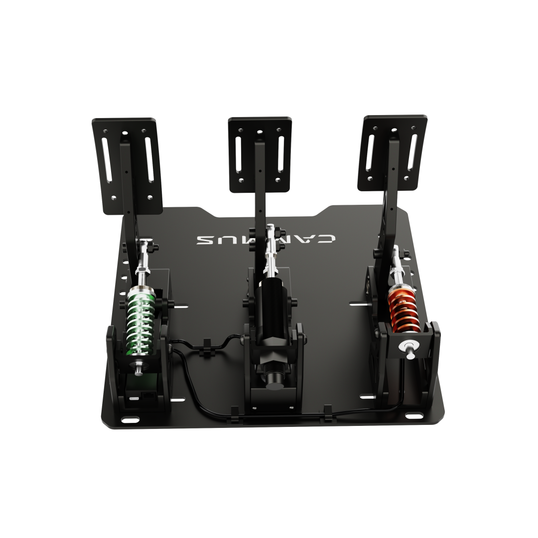 CAMMUS LC100 V4 — это обновленная версия педального узла с load cell, которая устанавливает новый стандарт в своем классе. Главное отличие V4 — 200-килограммовая нагрузочная ячейка на тормозе, обеспечивающая исключительную точность дозирования усилия. В реальных гоночных автомобилях торможение измеряется именно усилием на педали, а не её ходом — и LC100 V4 передает этот принцип в симуляторы.