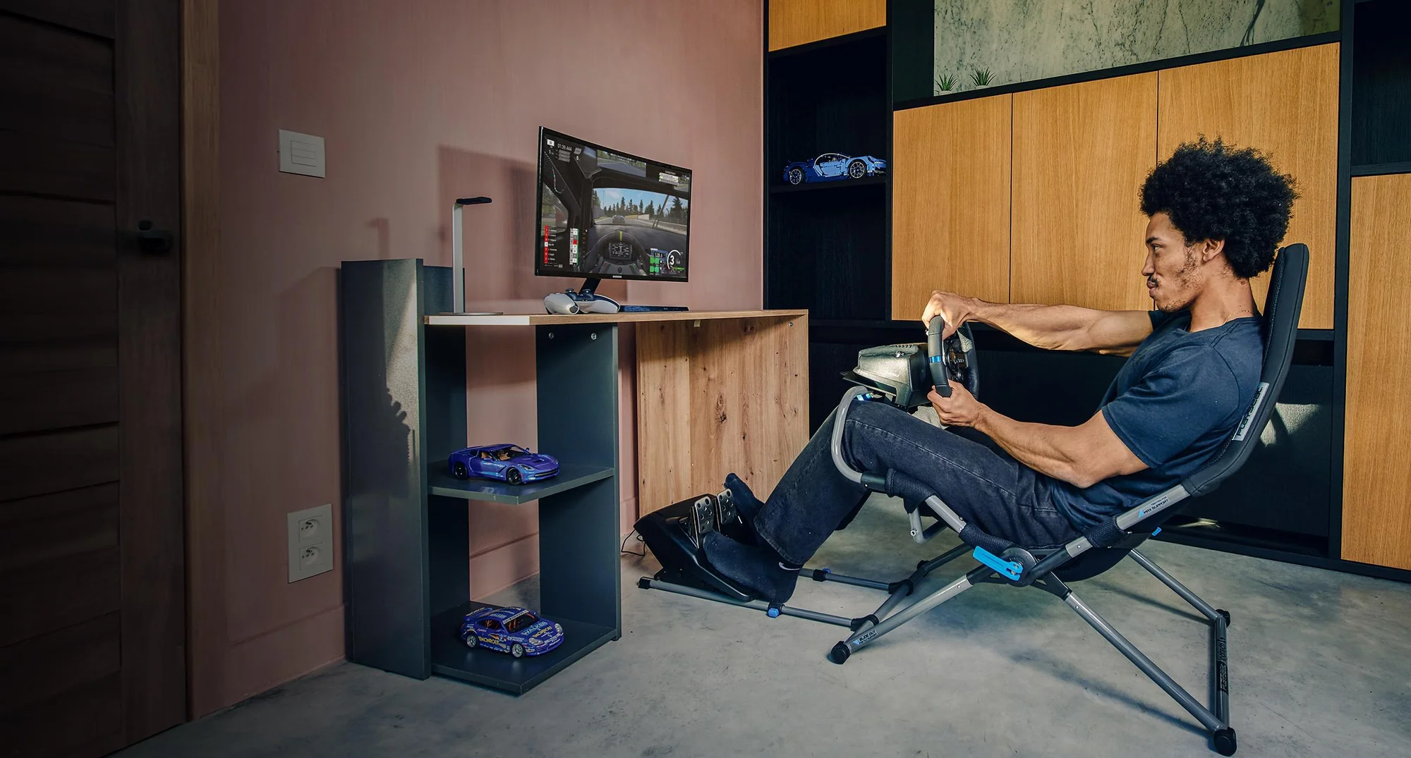 - Быстрая настройка — легко регулируются угол, высота и расстояние рулевого колеса и педалей.