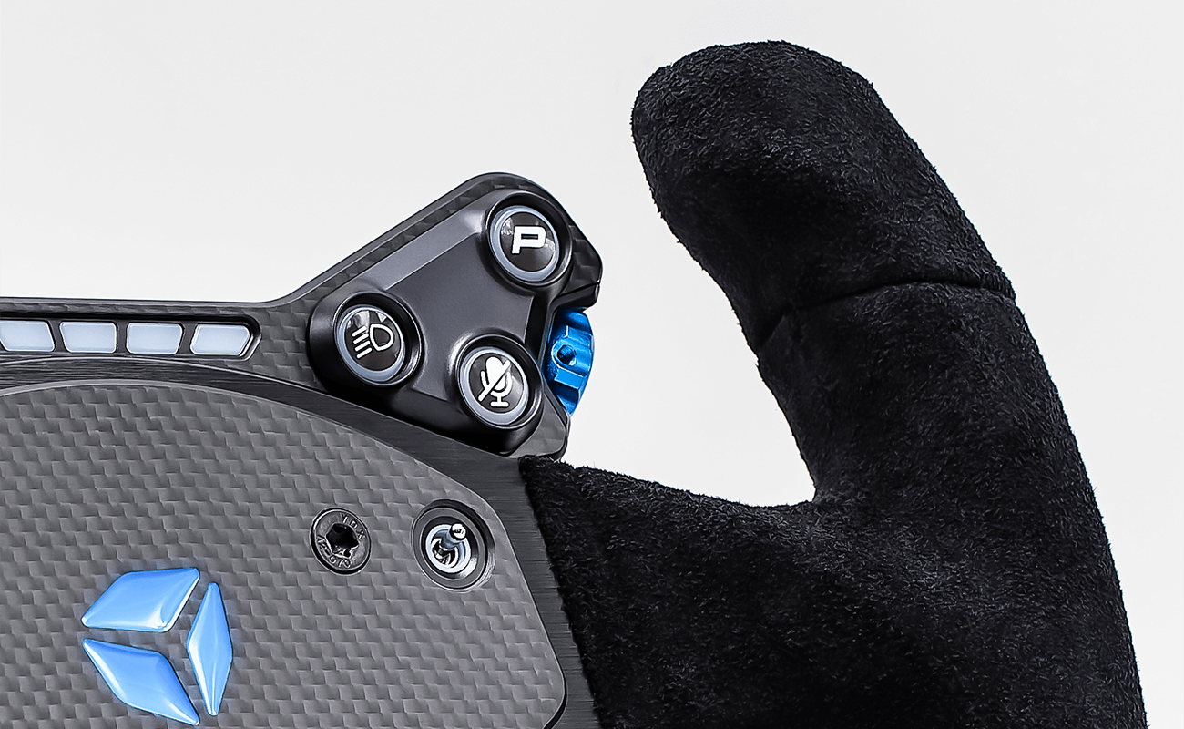 В лучших традициях Cube Controls, GT-PRO V2 изготовлен из премиальных материалов — карбона и алюминия — и оснащён алюминиевыми лепестками переключения R-Spec, выполненными методом прецизионной обработки. По уровню производительности этому кнопочному модулю нет равных.